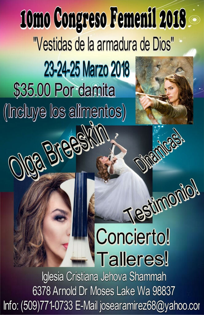 LA IGLESIA CRISTIANA “JEHOVÁ SHAMMAH” Y LOS PASTORES JOSÉ ÁNGEL Y MARÍA RAMÍREZ, TE INVITAN AL 10mo. CONGRESO FEMENIL 2018, DEL VIERNES 23, AL DOMINGO 25 DE MARZO.